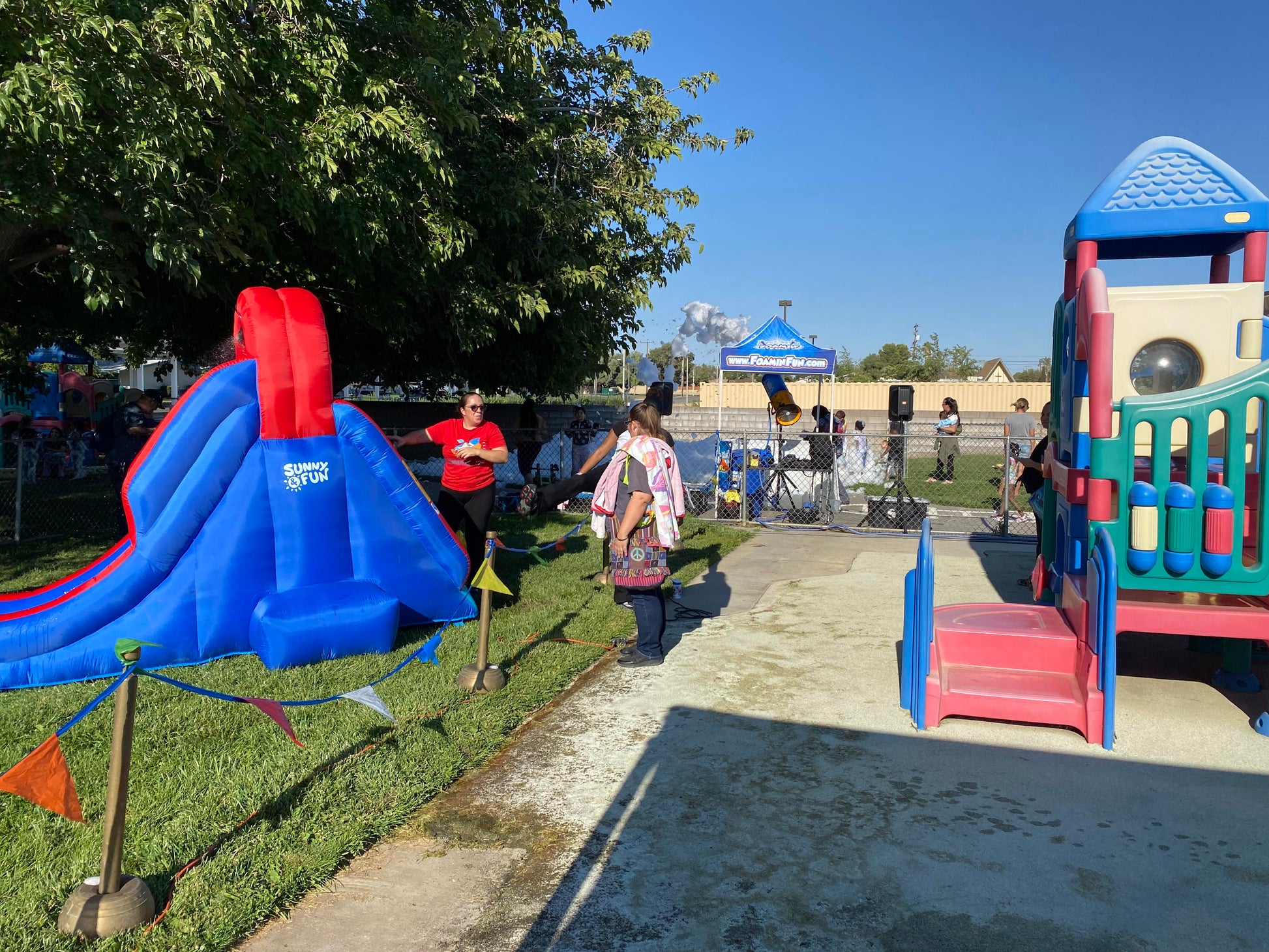 Four–five rotating water zones β€’ 60 pump blasters β€’ 2 MINI Water Slides + commercial slip ’n slide β€’ Giant Earth Ball courage challenge β€’ Pro Sound gear blasting perfect Kids music