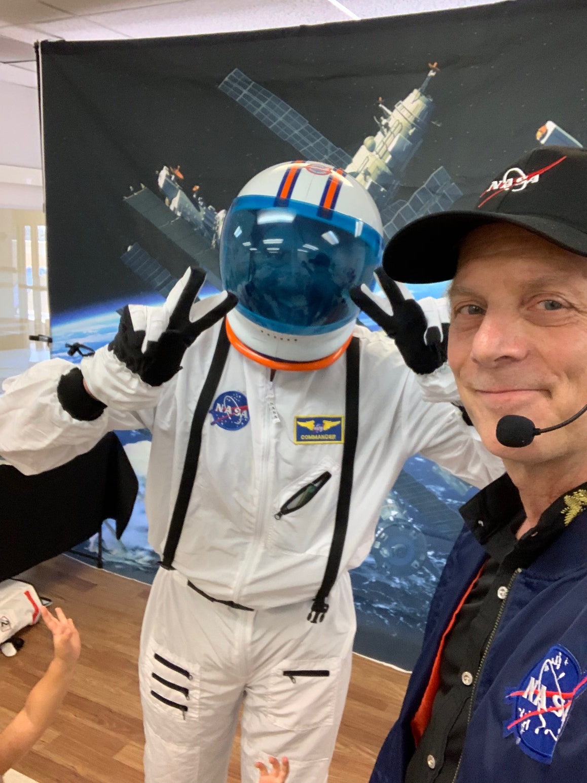 Blast off on a journey through the solar system with Captain Cosmos and his American Astronaut co-pilot! Set against a NASA-inspired space station backdrop, this interactive show combines science, storytelling, and hands-on fun. Children learn about each planet using real astronaut photos and then help build a full solar system out of giant inflatable planets.