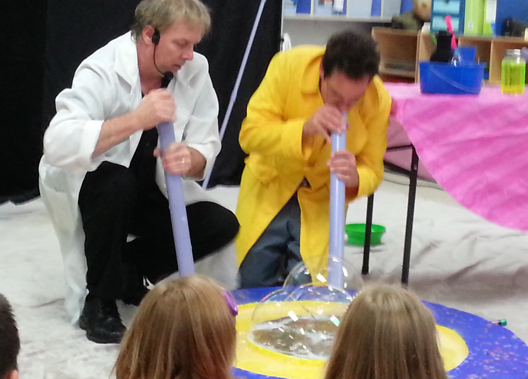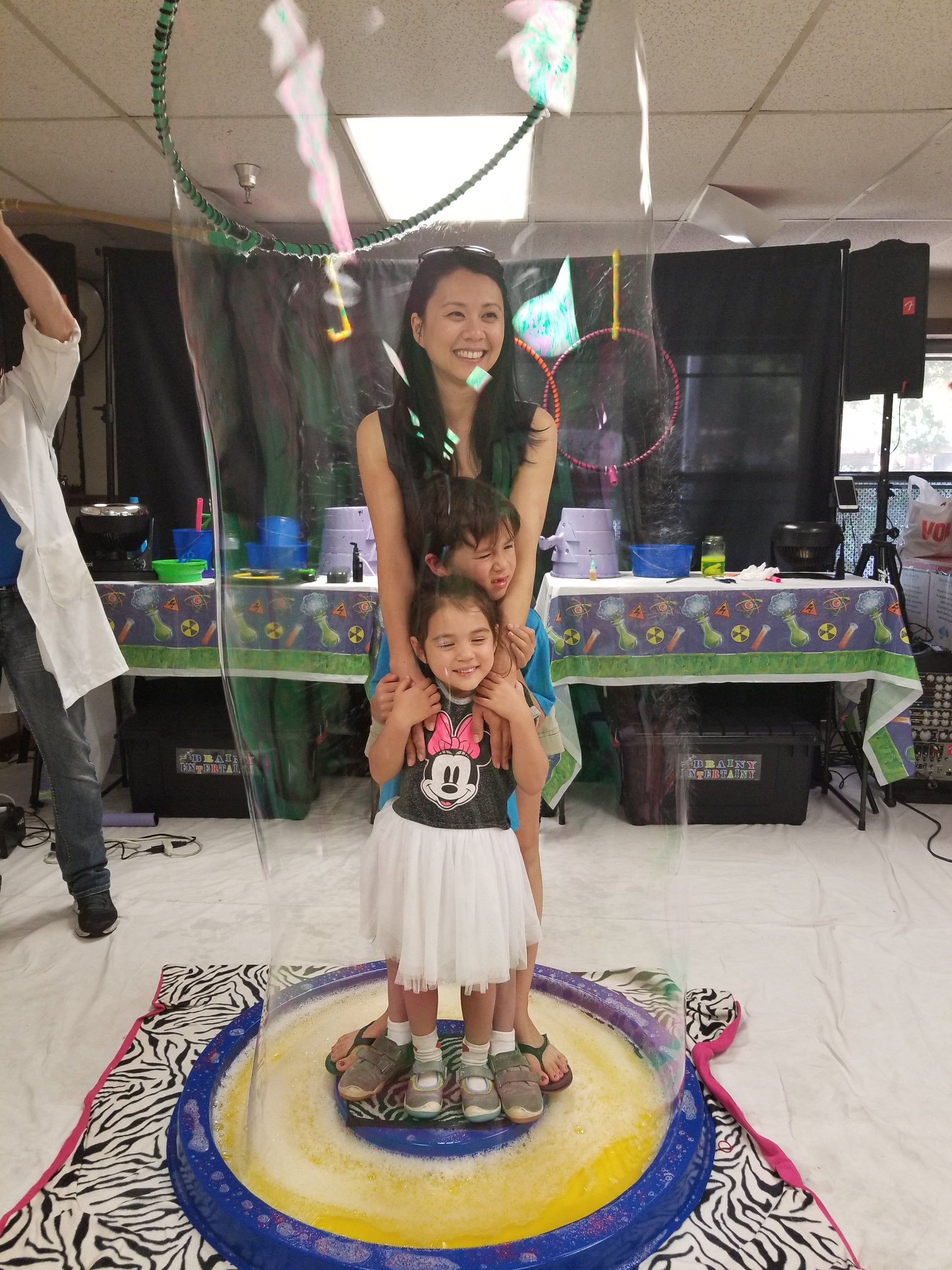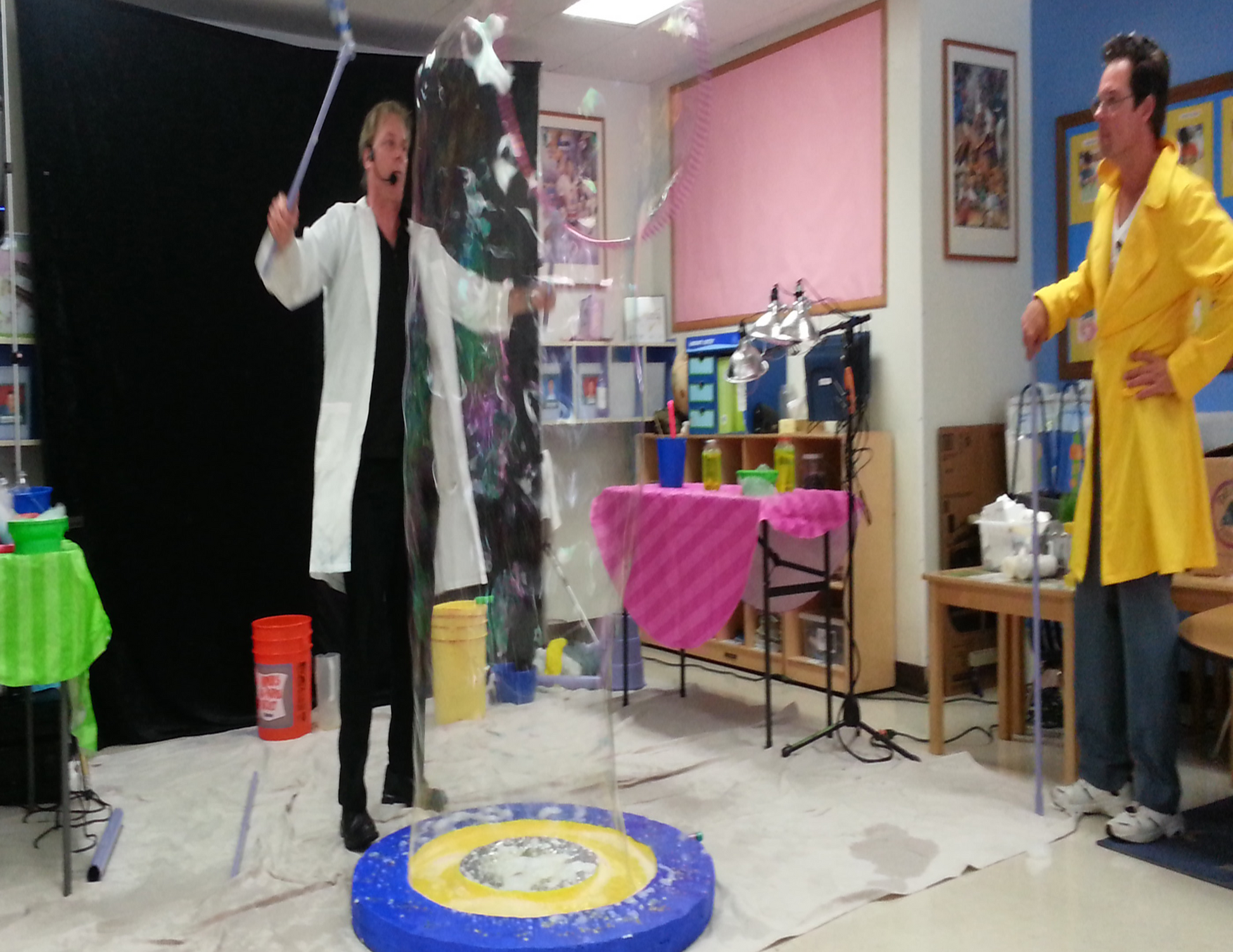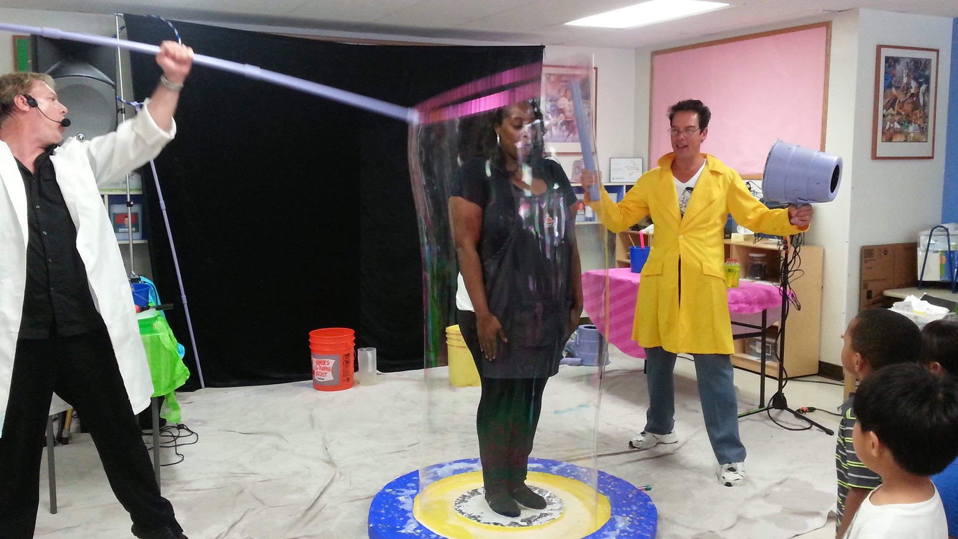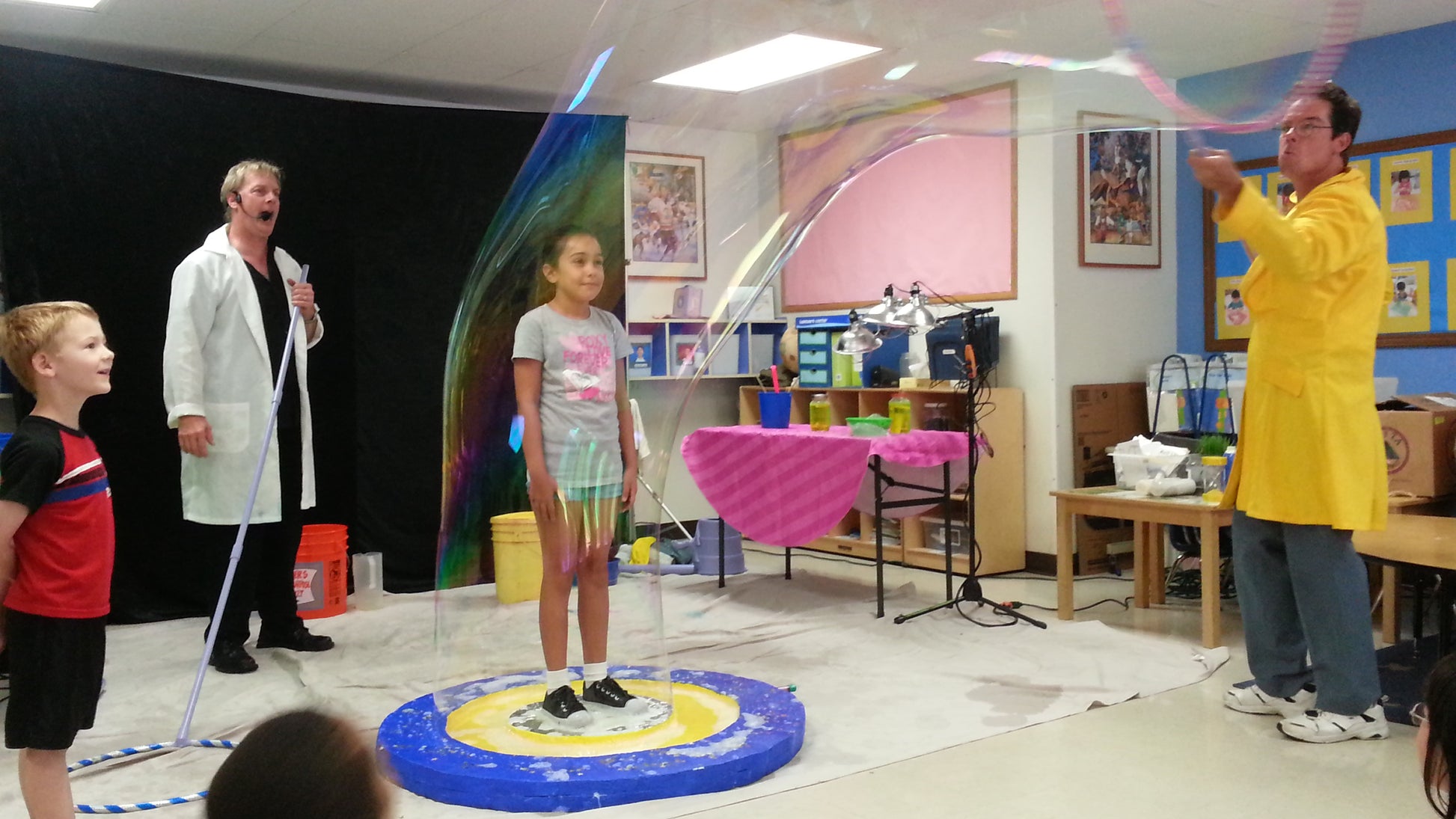 Kids watch in amazement as we create giant bubbles, vapor-filled orbs, glowing illusions, and full-body bubble chambers β while explaining the science behind each effect. Unlike the theatrical Bubble Infusion, this show takes a relaxed, educational direction, making it ideal for schools and libraries.